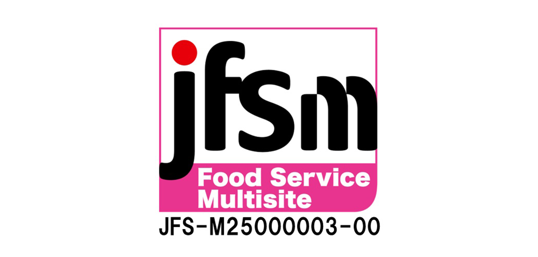 お客様により一層の「安心」をお届けするため、多店舗展開向け食品安全マネジメント規格「JFS-GM規格(フードサービス・マルチサイト)」の適合証明を取得しております。