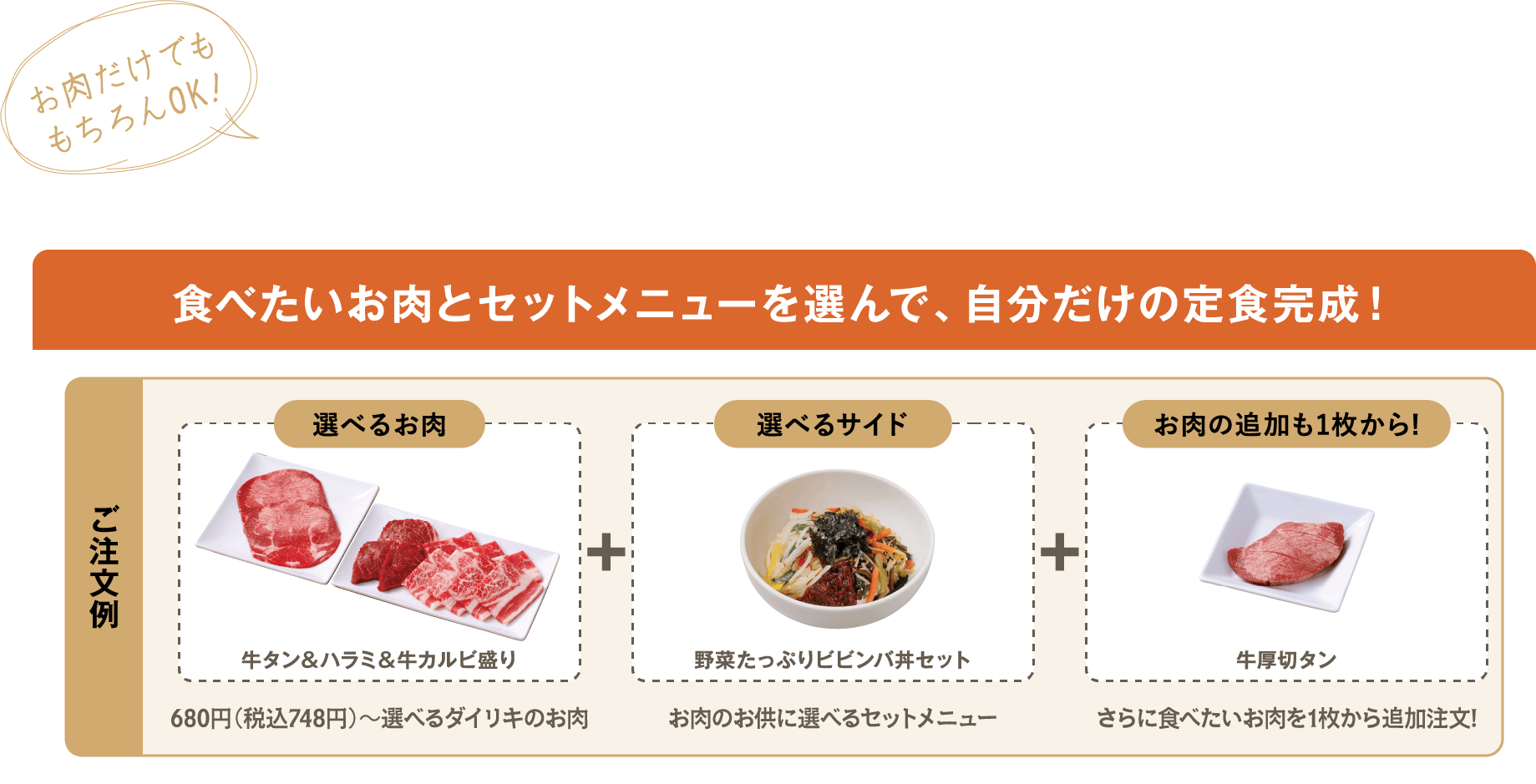 さらに、お好きなお肉を1枚から 単品お肉