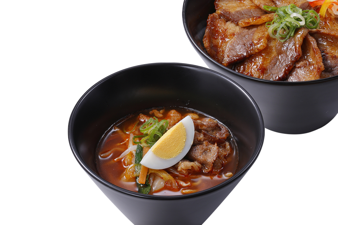 丼の価格+300円(税込330円)お好きな丼+肉屋の肉そば(シビ辛)(ハーフ)