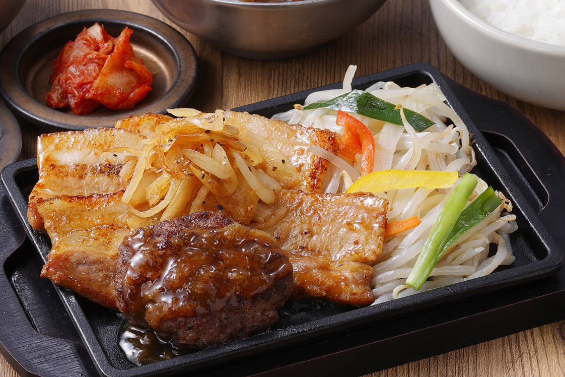 肉屋のハンバーグ&オニぽん豚カルビ定食